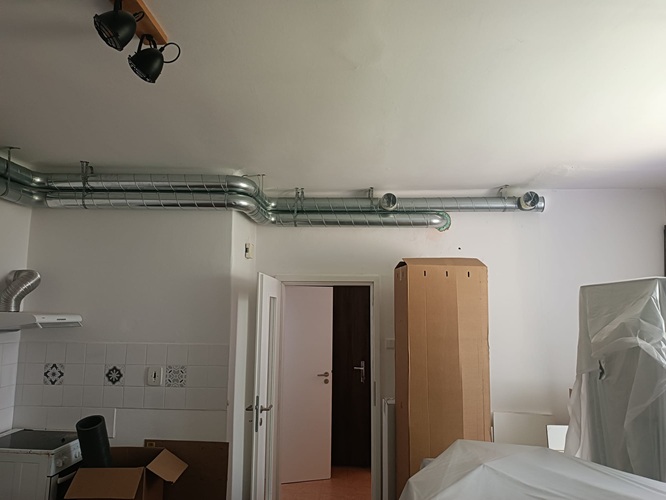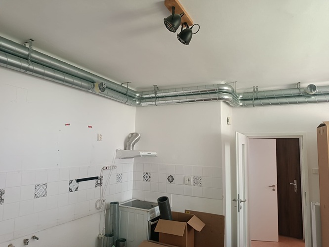 Instalace jednotky Zehnder CA180 a VZT potrubí, byt Evropská