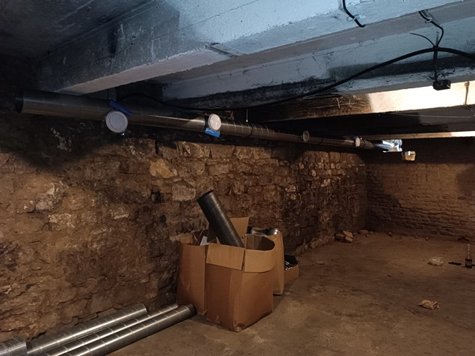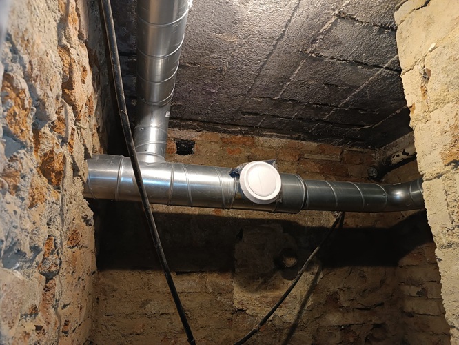 Instalace potrubí ve sklepních prostorách Petrohradská